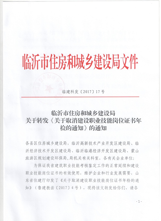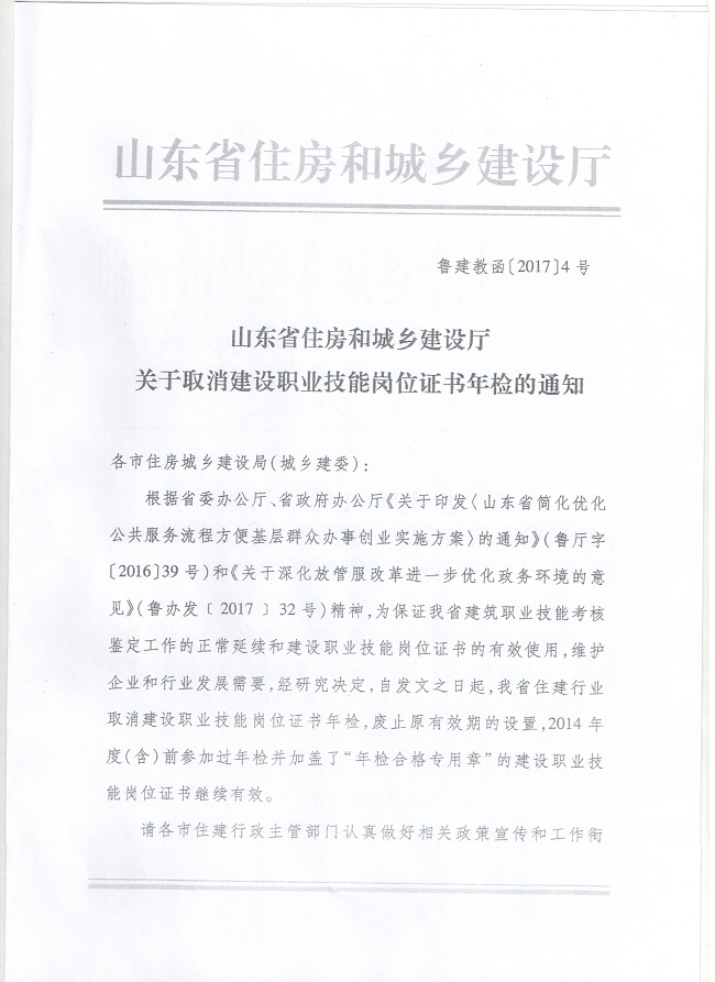 关于转发《关于取消建设职业技能岗位证书年检的通知》的通知
